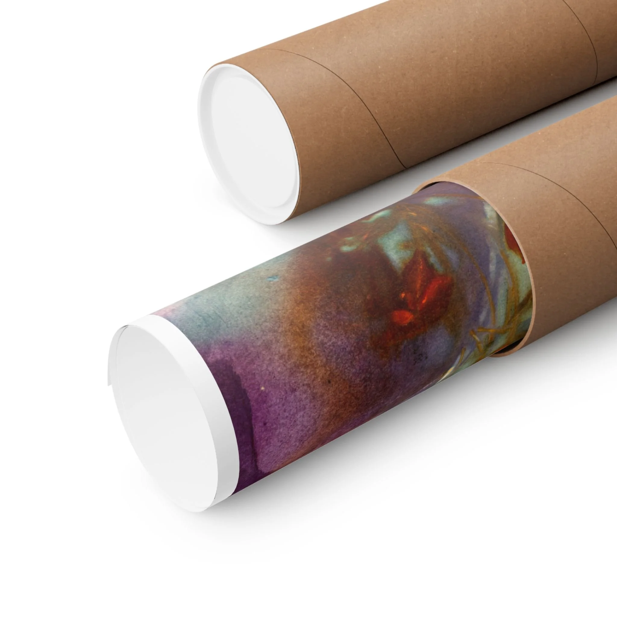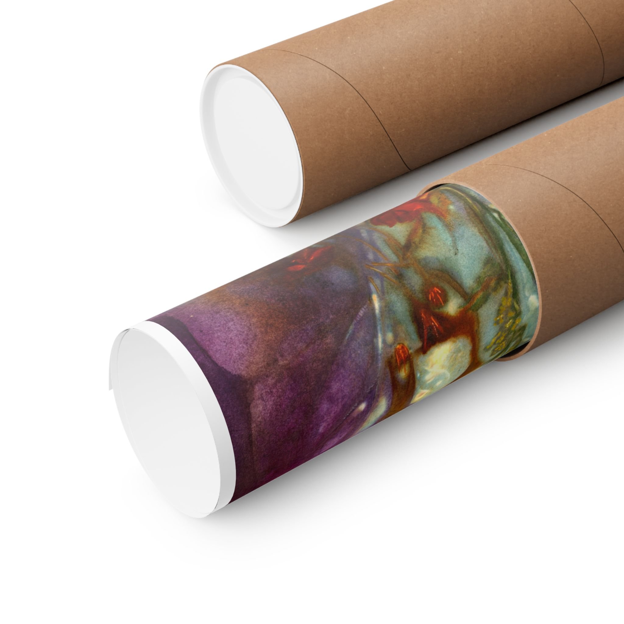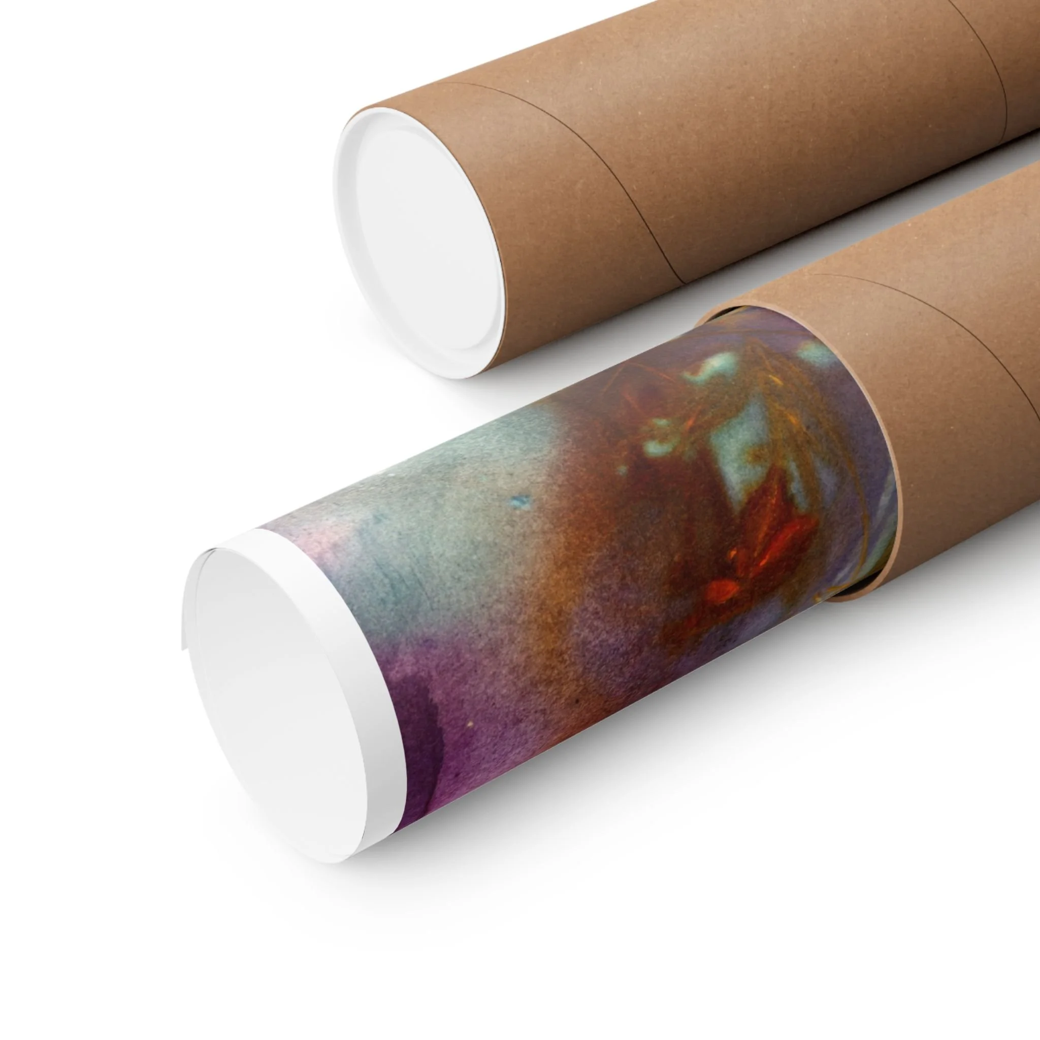 A delicate and ethereal floral composition featuring a variety of flowers set against a dreamy, soft-focus background in shades of purple and blue. The central plant is goldenrod, flanked by clusters of white phlox on the left and coreopsis toward the bottom right. The flowers and leaves have an almost translucent quality, blending harmoniously with the misty, atmospheric backdrop that enhances the overall sense of depth and softness. The painting combines both fine detailing in the flowers and a flowing, abstract treatment of color and light. For the best presentation, I recommend framing with an acid-free matt.